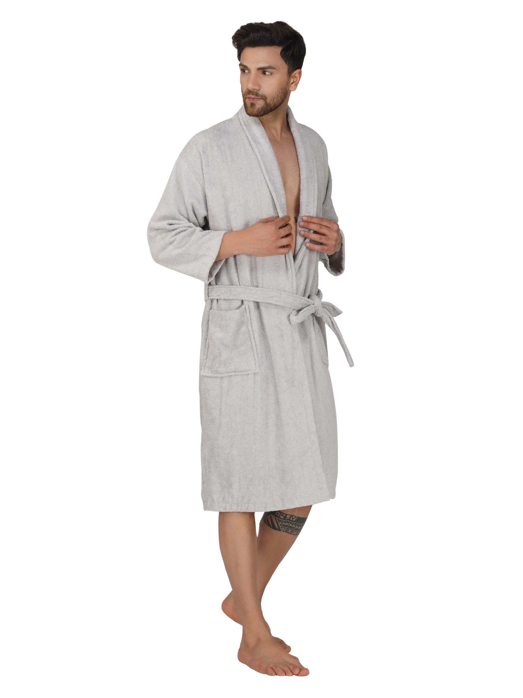 Rangoli Organic Bamboo Bathrobe for Men |Light Grey